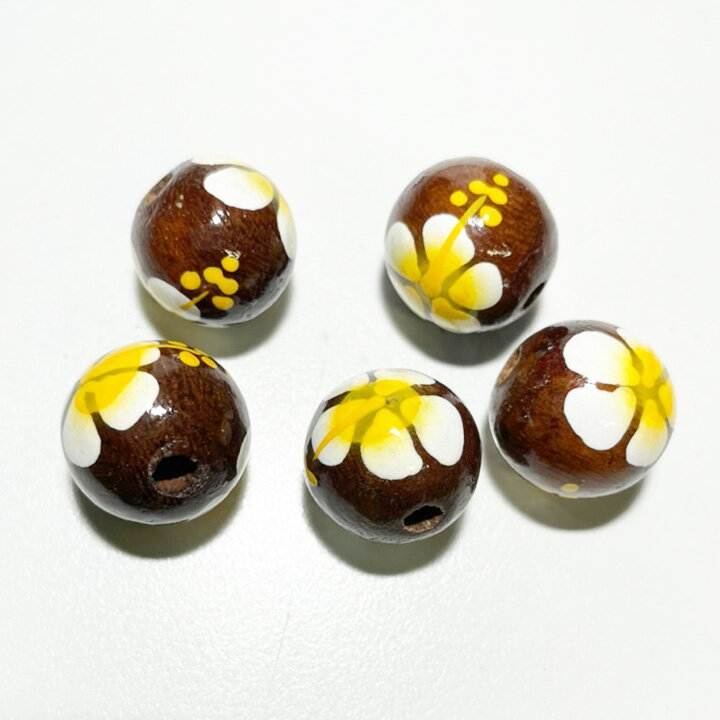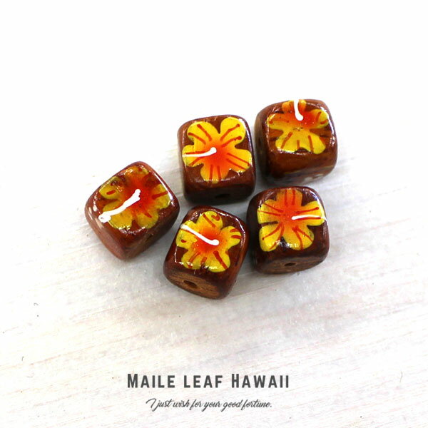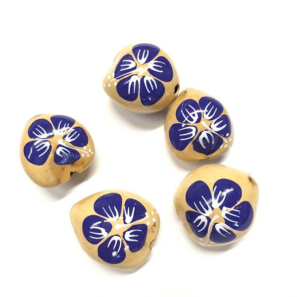 ウッドビーズ ククイ キャンドルナッツ 【0273】 5個セット(5個入) フラワー ハイビスカス ブラック ホワイト イエロー くくい くくいなっつ ハワイアンリボンレイ ククイナッツ ヘアゴム アクセサリー