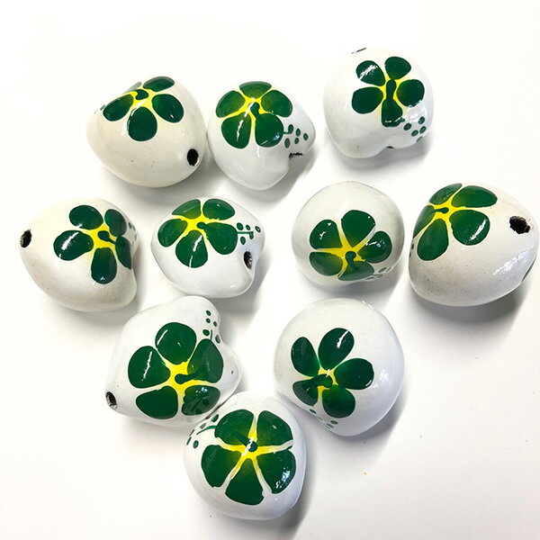 ウッドビーズ ククイ キャンドルナッツ 新色 ハイビスカス グリーンフラワー【0188】 5個セット(5個入)白地 くくい くくいなっつ ハワイアンリボンレイ ククイナッツ ヘアゴム アクセサリー