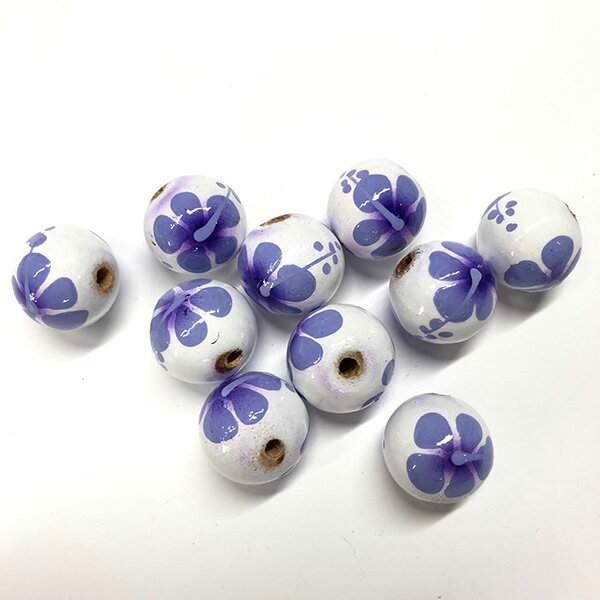 ウッドビーズ ククイ キャンドルナッツ 新色 ハイビスカス パープル フラワー【0145】 10個セット(10個入)白地 くくい くくいなっつ ハワイアンリボンレイ ククイナッツ ヘアゴム アクセサリー
