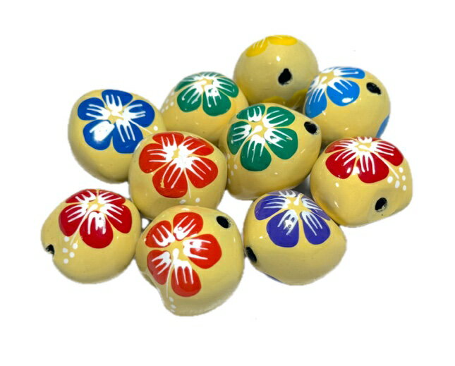 ウッドビーズ ククイ キャンドルナッツ 新色 ハイビスカス レッドフラワー【0185】 5個セット(5個入)白地 くくい くくいなっつ ハワイアンリボンレイ ククイナッツ ヘアゴム アクセサリー
