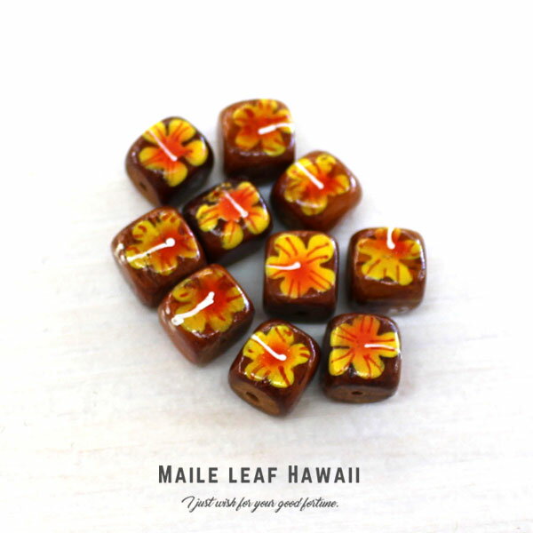 ウッドビーズ ククイ キャンドルナッツ 【0071】 10個セット(10個入)四角形 スクエア イエロー くくい くくいなっつ ハワイアンリボンレイ ククイナッツ ヘアゴム アクセサリー