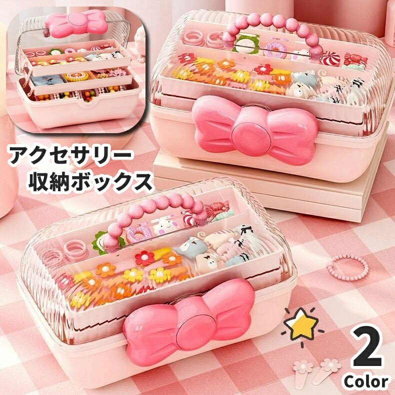 送料無料 アクセサリー収納ボックス 収納ケース 3段 子供用 キッズ 女の子 子ども 女児 大容量 取っ手付き 持ち手付き リボン ヘアアクセサリー 小物入れ 髪飾り ヘアピン ヘアゴム 持ち運び 整理 保管 ギフト プレゼント 贈り物