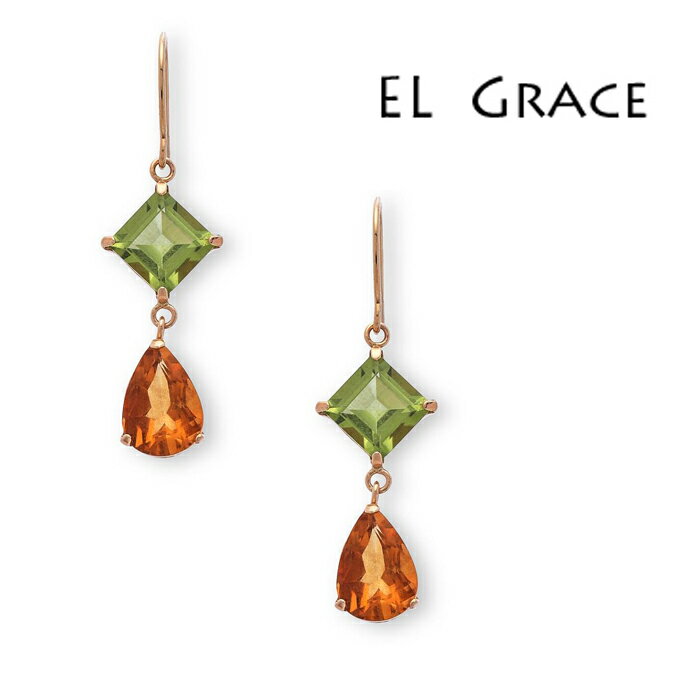 K10 シトリン(11月誕生石) ペリドット(8月誕生石) バイカラー 2ピーシーズ フックピアス【CP159】天然石 黄金色 黄緑 誕生日 記念日 女性 プレゼント クリスマス 母の日 10金 揺れる アクセサリー ペアシェイプ スクエア 雫 正方形 チャーム パワーストーン 金属アレルギー