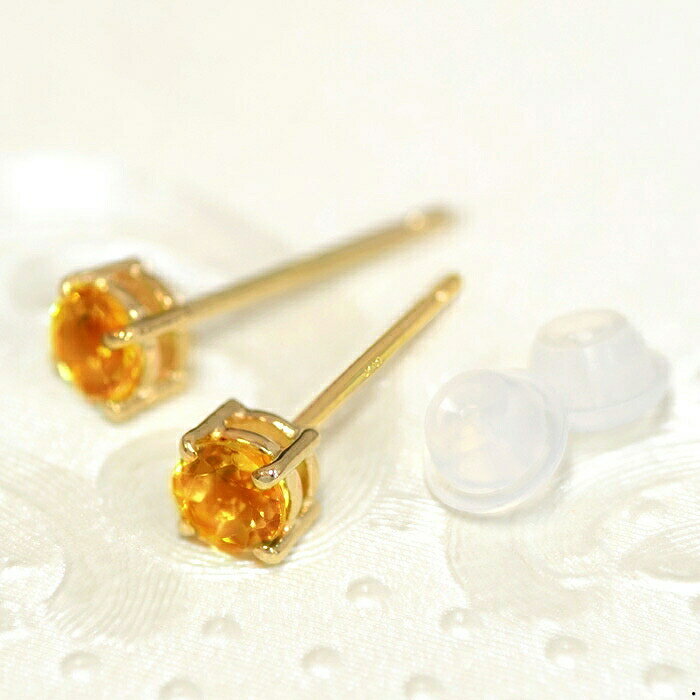 【バラ売り/1個】 ピアス 18金 イエローゴールド 天然石 シトリンのスタッドピアス 直径4.0mm|K18YG k18 18k パワーストーン 貴金属 ジュエリー レディース メンズ