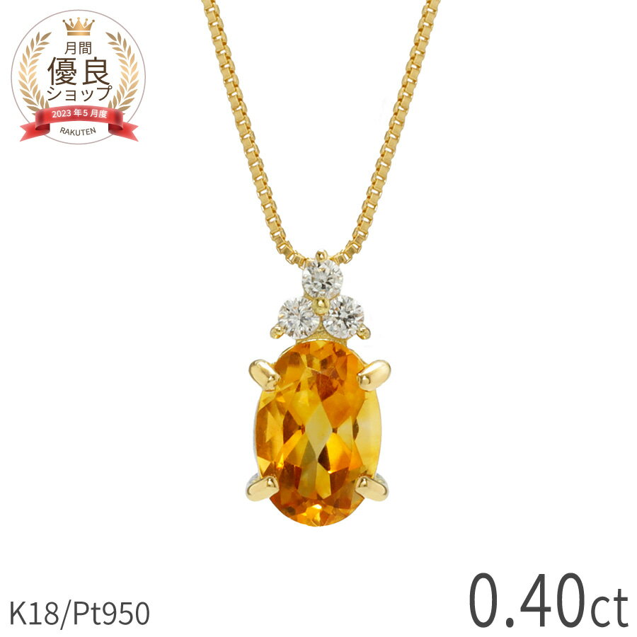 シトリン ダイヤモンド ネックレス 0.4 カラット 18金 イエローゴールド プラチナ950 k18 ピンクゴールド 18k パワーストーン 11月 誕生石 オレンジ オーバルカット スキンジュエリー 大人 レディース ジュエリー 日本製 ギフト プレゼント バレンタイン