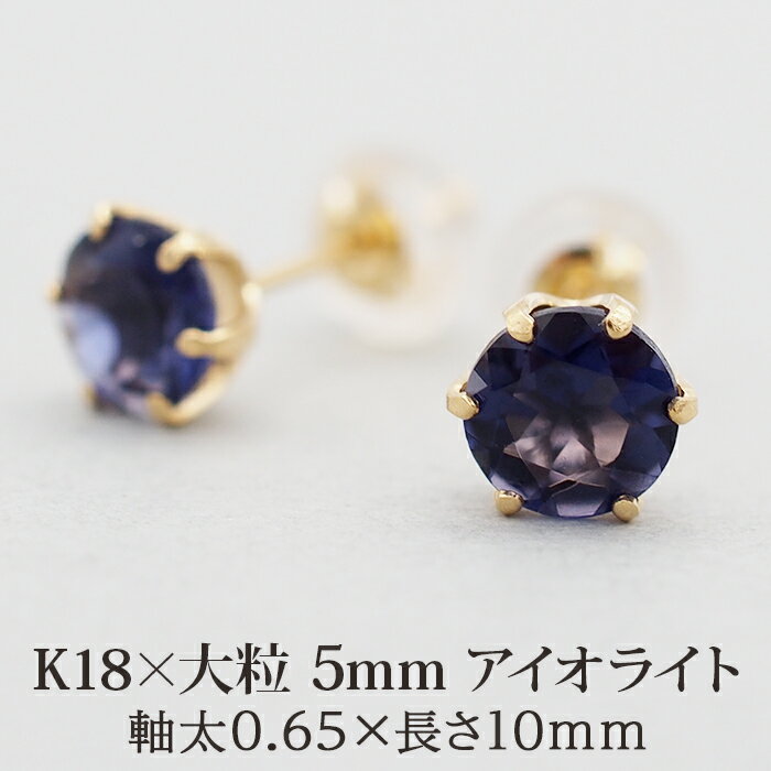 ピアス K18 アイオライト セカンドピアス 天然石 誕生石 【品質保証書つき】 日本製 5mm レディース 18金 1個ずつバラ売り プレゼント