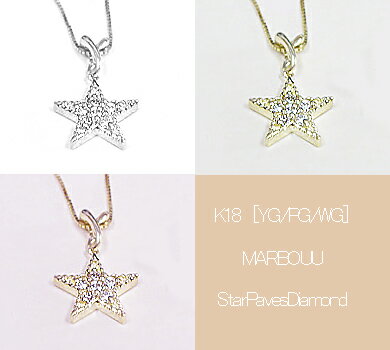 【完全無色透明】K18YG/PG/WG【0.12ct】ダイヤモンドパヴェ スターペンダントネックレス『Marbouu Etoile』[SIクラス Gカラー 無色透明 GOOD〜VERYGOOD]ハートアンドキューピット18K 18金 スター パヴェ 星 アンティークスターダイヤ【送料無料】