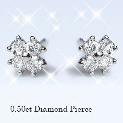【大特価】【完全無色透明Fカラー】pt900【0.5ct】フラワー ダイヤモンドピアス『四つ葉のフラワー』[SIクラス F〜Dカラー 無色透明 GOOD〜VERYGOOD] ハートアンドキューピットクローバー プレゼント 10周年 記念日 誕生日贈り物 母の日 花【送料無料】