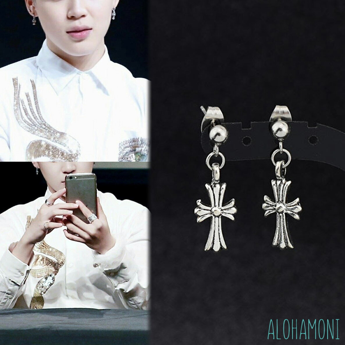 防弾少年団 BTS ジミン 着用モデル ヴィンテージ クロス クロムチャーム デザイン フープ ピアス イヤリング 両耳セット 十字架 シルバー リングピアス ライブ ファンミーティング jimin レディース メンズ ユニセックス 男女兼用 韓国 オルチャン (ピアス / イヤリング)