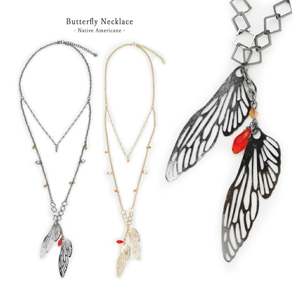 二連 メタルバタフライ ネックレス 蝶 可愛い レディース メンズ エスニック アクセサリー アジアン ヒッピー ボヘミアン 民族 リゾート amina チャイハネ Favolic