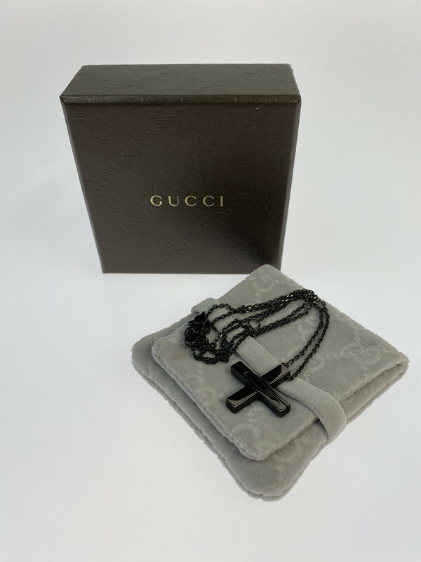 【中古品】【メンズ/レディース】 GUCCI グッチ 228363 カットアウトG ブラック ルテニウムコーティング クロス ネックレス 925 182-250821-ks-09-min カラー:ブラック 万代Net店