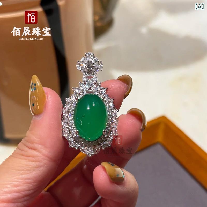 ネックレス レディース 高氷白玉髄 蛋面 緑玉髄 大蛋面 氷種 電気メッキ加工 シルバー925 鎖骨チェーン ペンダント