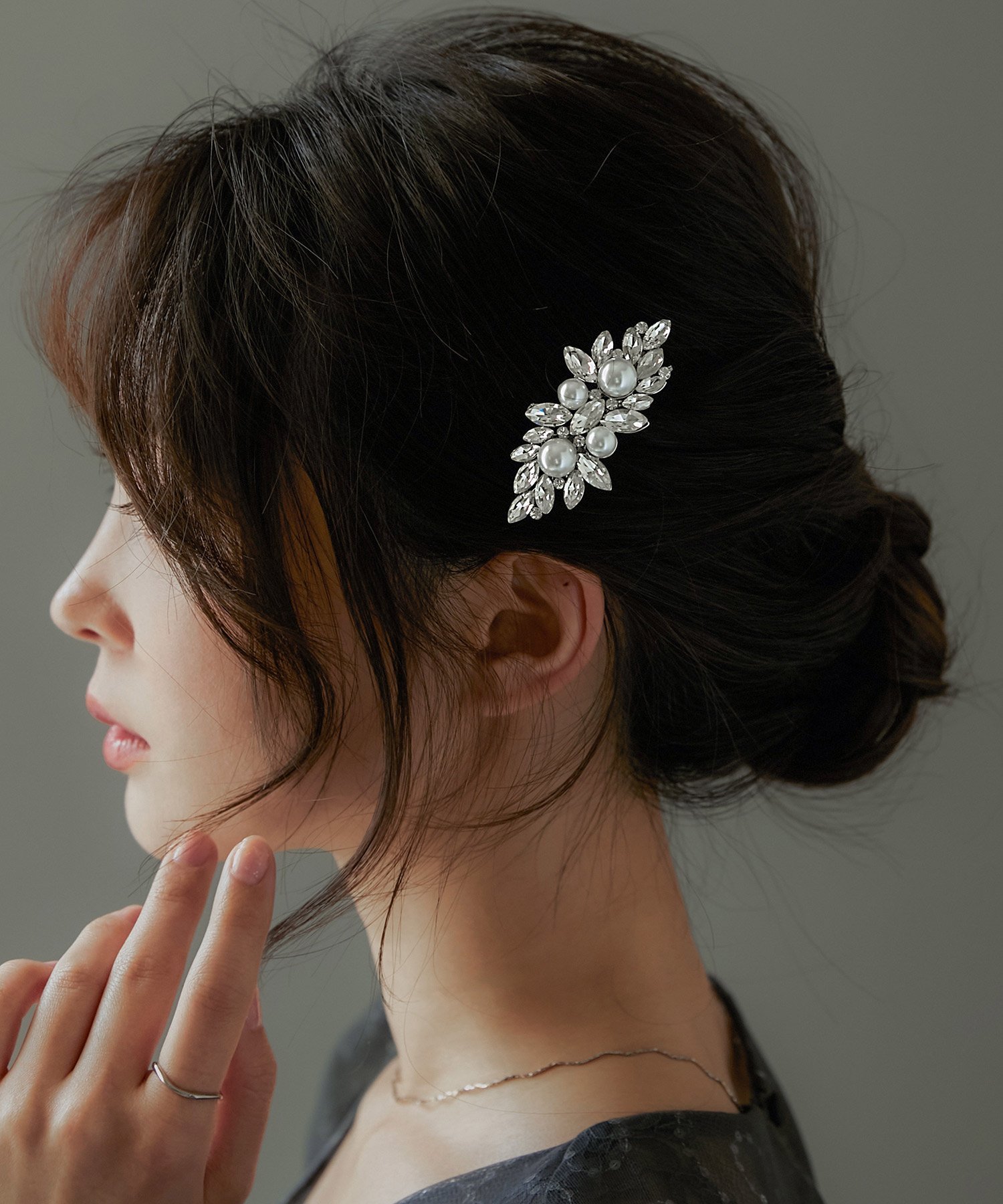 niana パールパーティーヘアコーム ビーフラット ヘアアクセサリー バレッタ・ヘアクリップ・ヘアピン シルバー