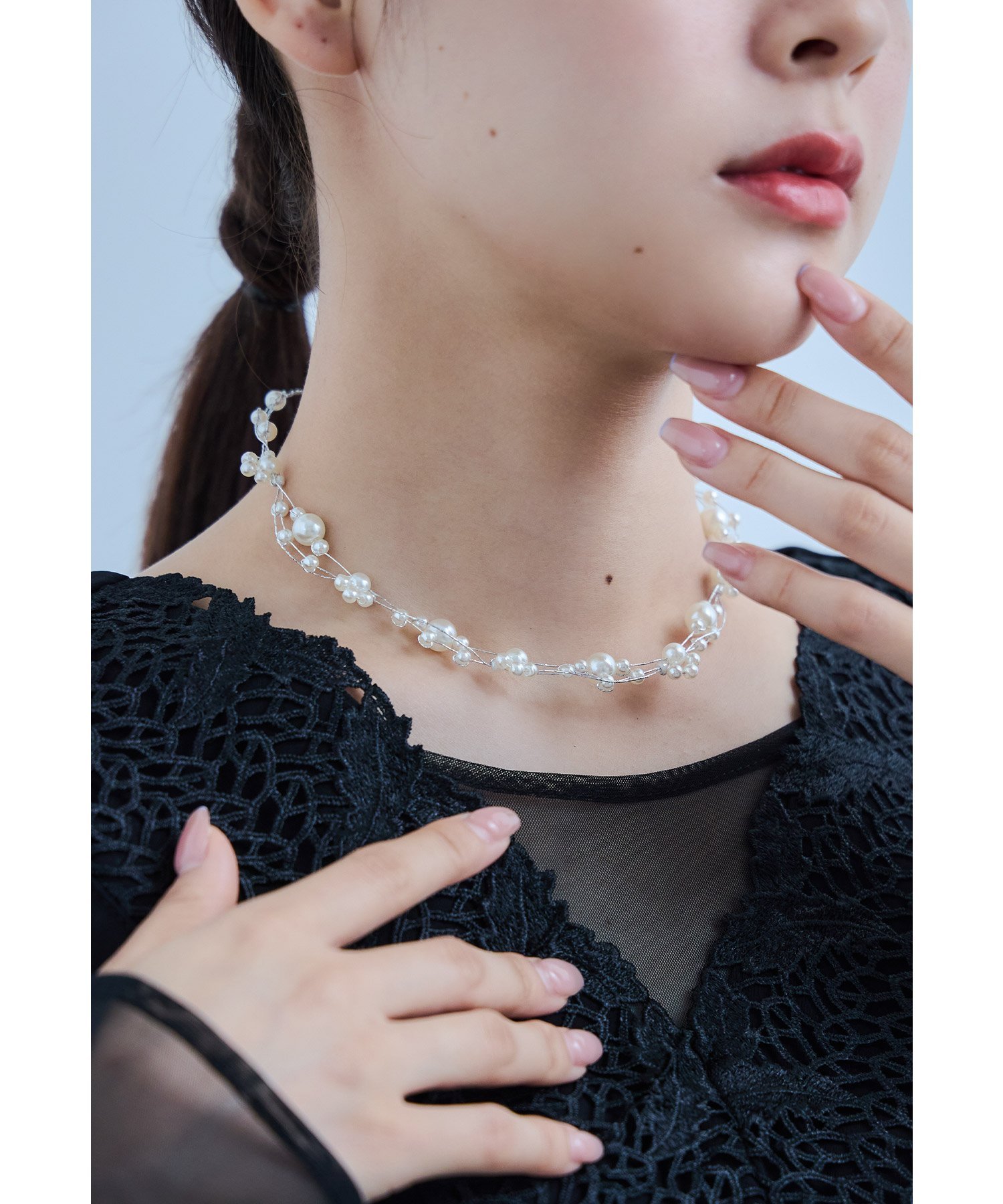 niana スカラップパールビジューネックレス ビーフラット アクセサリー・腕時計 ネックレス シルバー