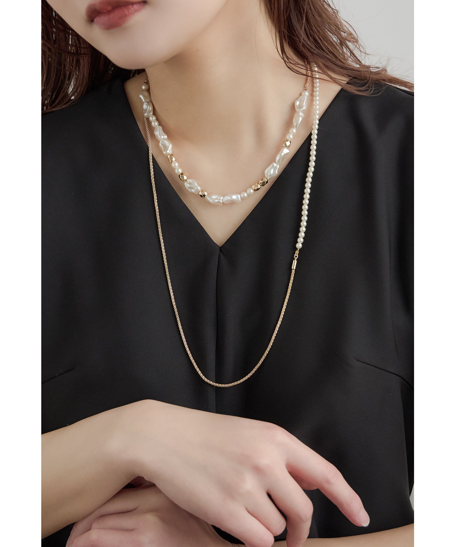 niana パールチェーン2連ネックレス ロング ゴールド レイヤード 結婚式 二次会 同窓会 ビーフラット アクセサリー・腕時計 ネックレス ゴールド【送料無料】