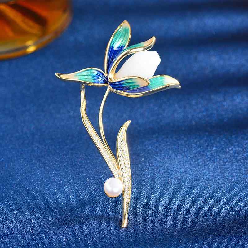 ブローチ レディース 女性用 天然パール パール 七宝焼き 木蓮 マグノリア 花 フラワーモチーフ ゴールドメッキ 銅 ジルコニア エレガント 上品 優美 アクセサリー ファッション小物 通勤 フォーマル カジュアル