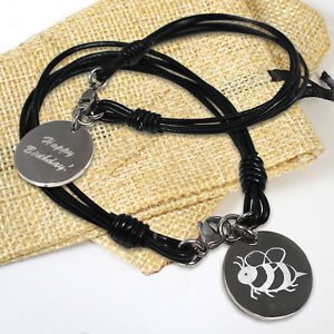 【送料無料】ブレスレット アクセサリ— グラビアブレスレットgravure personnalise bracelet cuir avec cercle acier charme pochette cadeau