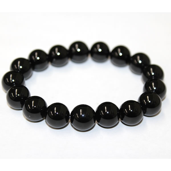 【ストーンブレスレット】 天然石/黒オニキス オニキスの曇りない黒の美しさはこの石の持つ迷いのない信念を象徴するような強さを表しています。 オニキスは自分自身の中心軸をしっかりと安定させる石で、着実に目標を実現するために地に足をつけた行動を導いてくれる石です。 また人生においても幾度も降りかかるつらい場面苦しい面においてもあきらめず前に進むための忍耐力や意志の強さを与えてくれる石です。 それゆえ、スポーツ選手の苦しい練習の際のお守り、ダイエット等を耐え抜くためのお守りとしてもお勧めです。 あきらめずに決めたことをやり遂げるサポートをするオニキスは、成功の象徴とも言われます。達成したい目標などあるかたにはお勧めです。 オニキスは悪い意味で感情を抑えてくれる為、夫婦の幸せを保つ石とも言われます。 注意 画面上と実物では多少色具合が異なって見える場合もございます。ご了承ください。 詳細 17玉:ストーン寸法12mm ブレス寸法17cm(内周)