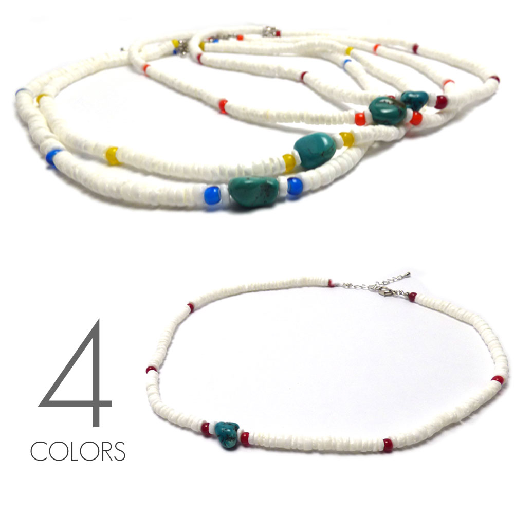 VASEERA ハワイアンホワイトシェル(白ヒーシー) 天然ターコイズ&ホワイトハーツ アジャスター付き ネックレス【メンズ/レディース/VN-002】