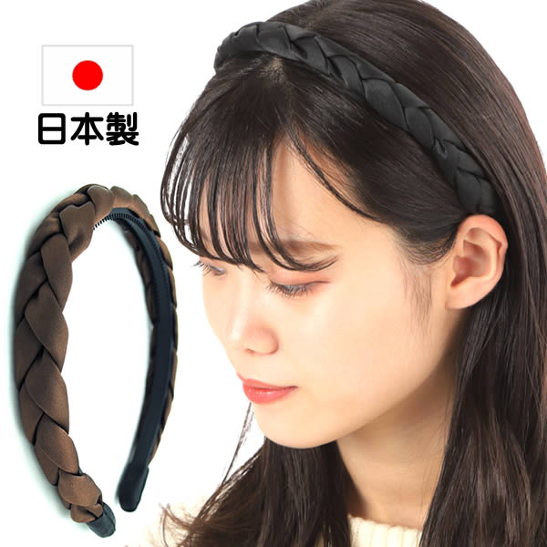 カチューシャ 痛くない いたくない 日本製 編み込み ツイスト サテン サテンクレープ vn3109s