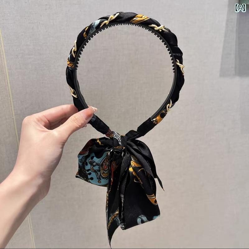 ヘアバンド ターバン レディース レトロ チェーン ヘア バンド シルクスカーフ サマー ストリーマー ヘッド ワンピース デイリー タイ 編み込み リボン ピン ドレス