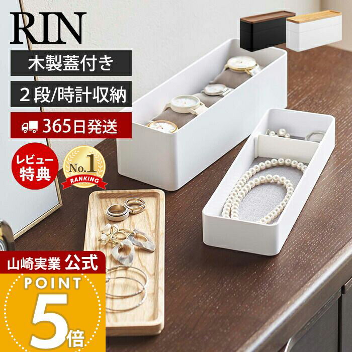 レビュー特典! 収納雑貨 《 山崎実業 トレー付きスリムアクセサリー&時計ケース リン 》 RIN 5812 5813 公式 ブラウン ナチュラル 白 黒 アクセサリー収納 腕時計 ウォッチ 小物収納 小物入れ トレイ ジュエリー ボックス おしゃれ 木目 木製 天然木 ウッド 北欧 シンプル