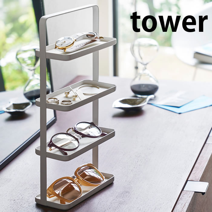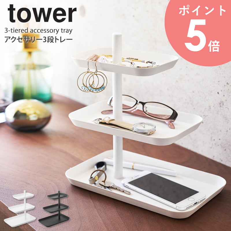 【送料無料】 アクセサリー 3段 トレー tower タワー おしゃれ シンプル アクセサリー 収納 ホワイト ブラック 卓上 山崎実業 メガネ 眼鏡 サングラス スマホ スタンド トレイ 腕時計 指輪 ピアス イヤリング 印鑑 鍵 小物置き モダン yamazaki 白 黒 4724 4725 works