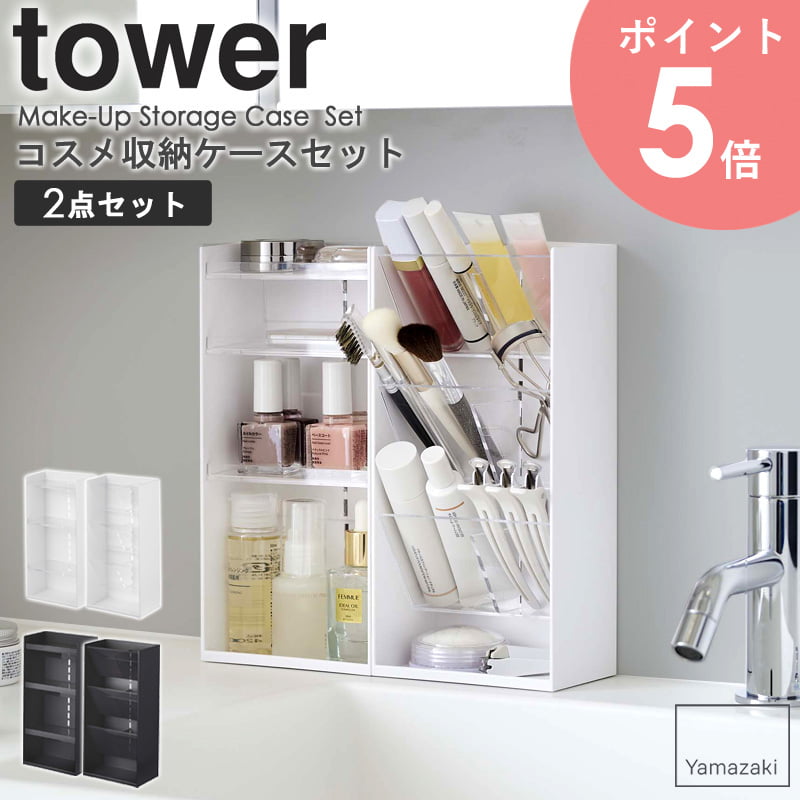 コスメ収納ケースセット tower タワー コスメ収納 セット リップ メイクブラシ ビューラー 口紅 ケース メイクスタンド コスメケース スリム メイク道具 小物入れ メイク収納 洗面台 収納 シンプル ホワイト ブラック 山崎実業 yamazaki 白 5601 5603 5602 5604 arco