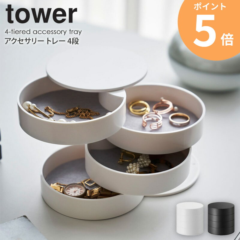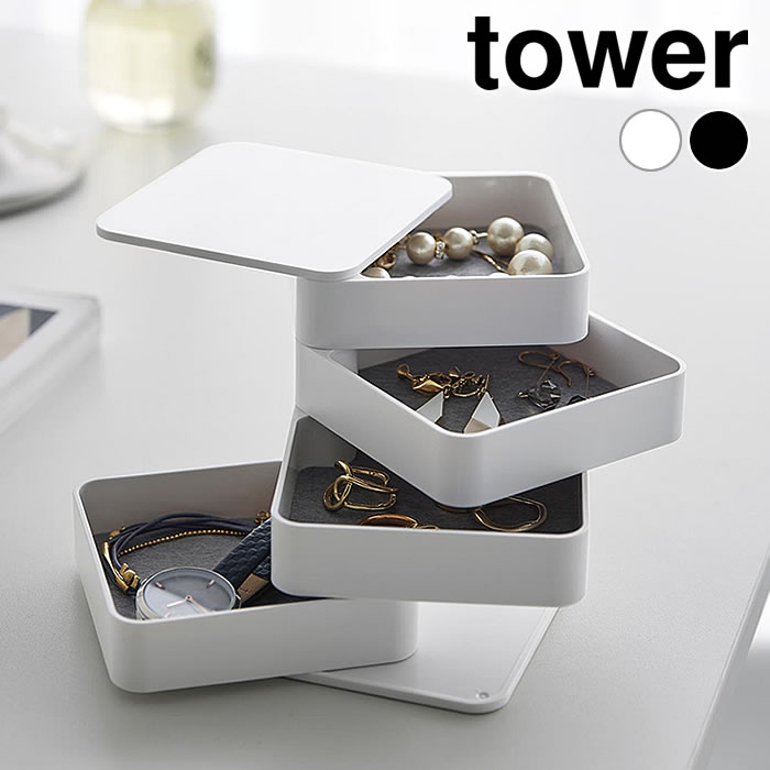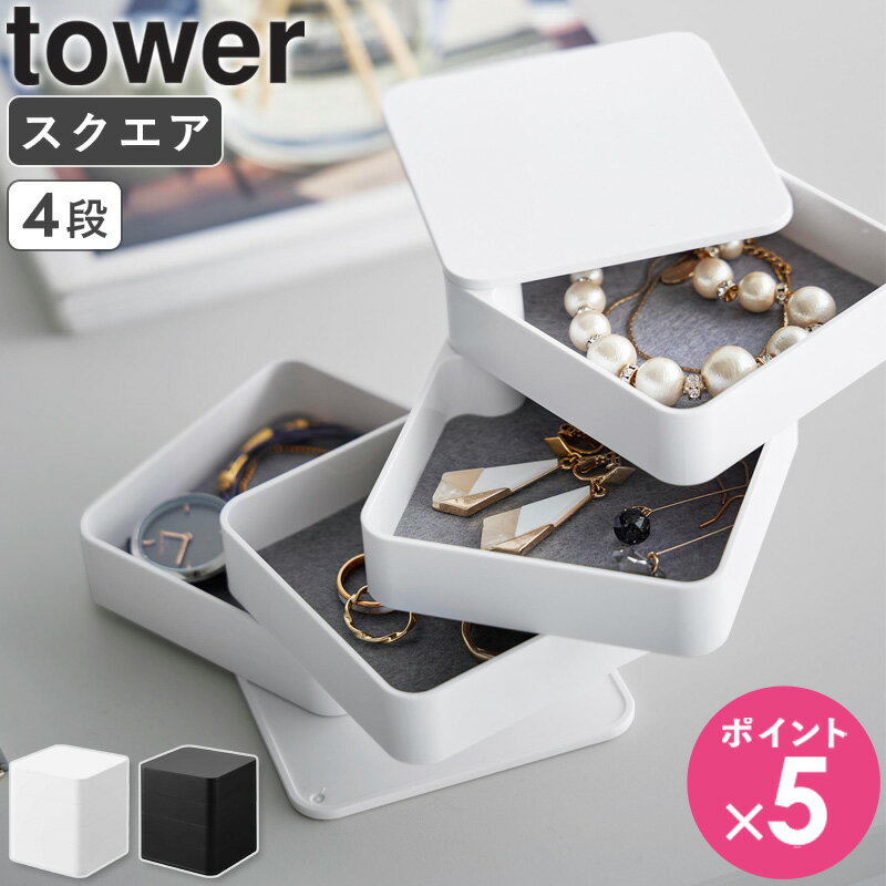 【12月5日はポイント最大10倍祭!】アクセサリーケース アクセサリートレー タワー 4段 スクエア tower アクセサリー 収納 回転式 ジュエリーケース おしゃれ 1753 1754 コンパクト タワーシリーズ 山崎実業 yamazaki ヤマジツ 白 黒 小物入れ アクセサリートレイ