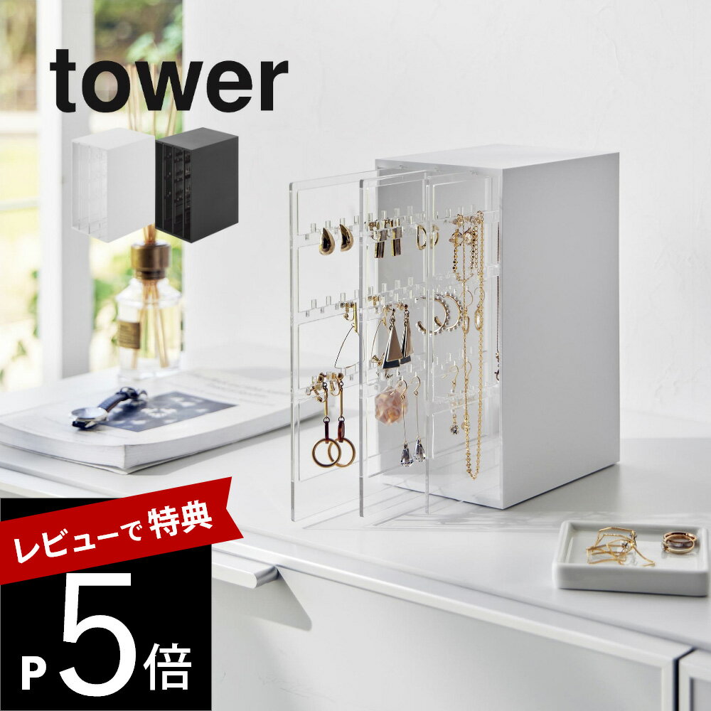 【レビュー特典】 山崎実業 【 スライド式ピアス&アクセサリーホルダー タワー 3連 】 tower 2038 2039アクセサリー 簡単管理 シンプル収納 掛けるだけ 引き出し 分別 分けて収納 シンプル スタイリッシュ おしゃれ 白 黒