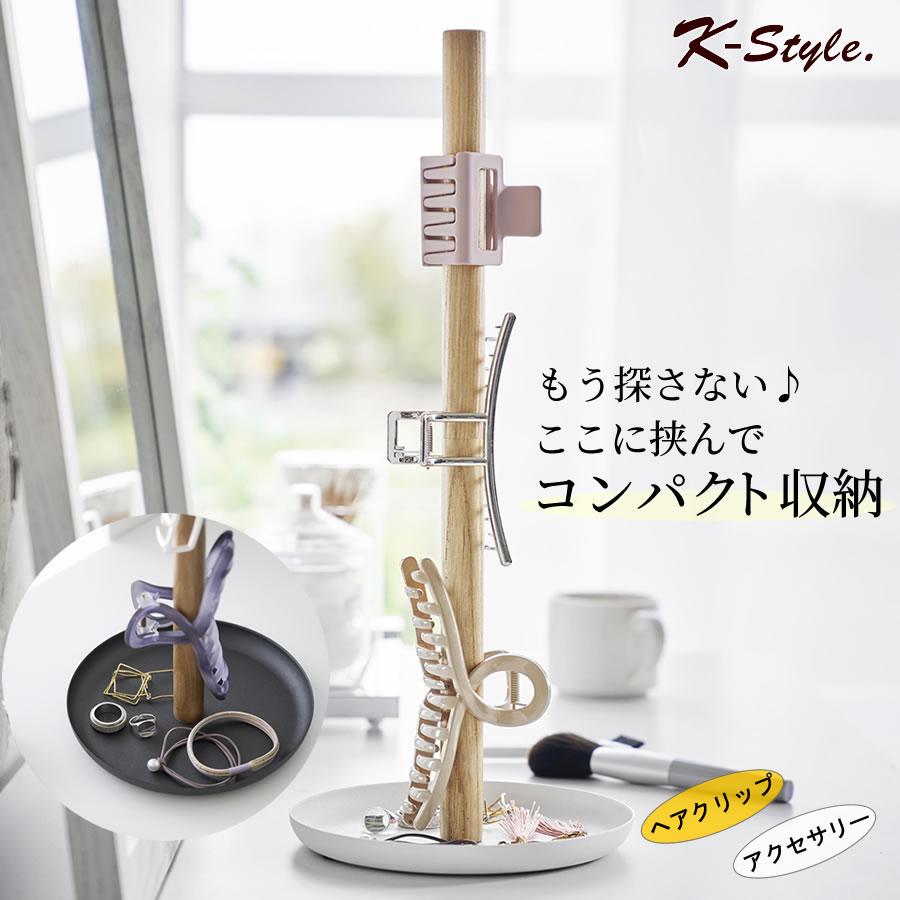 ヘアクリップスタンド 縦型 アクセサリースタンド 収納 TOWER ヘアクリップ 片付け トレイ付き ヘアアクセサリー 便利グッズ 整理 クリップスタンド 山崎実業 1405 タワー 【K-Style】 ヘアクリップ収納スタンド 213