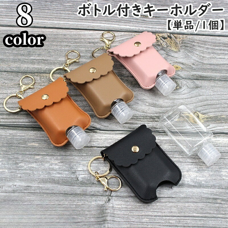 送料無料 ボトル付きキーホルダー 消毒液ホルダー ナスカン付き 単品 1個 30ml ボトルケース ボトルカバー 小分け 女性 女の子 レディース 大人女子 詰め替え容器 詰め替えボトル 吊り下げ 携帯 持ち運び 便利 ボタン スカラップ レザー調 かわいい おしゃれ