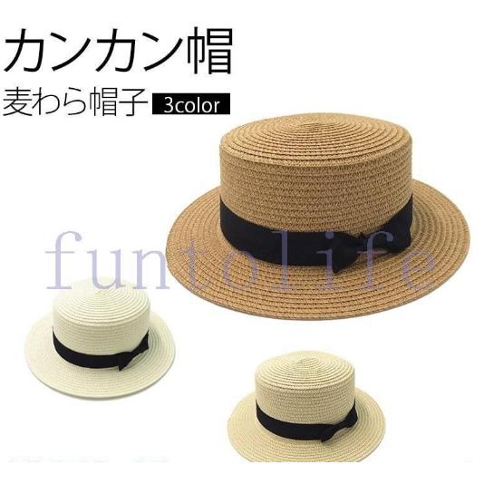 カンカン帽 レディース ハット 帽子 麦わら帽子 シンプル おしゃれ 男女兼用 クラシック お祭り 春 夏