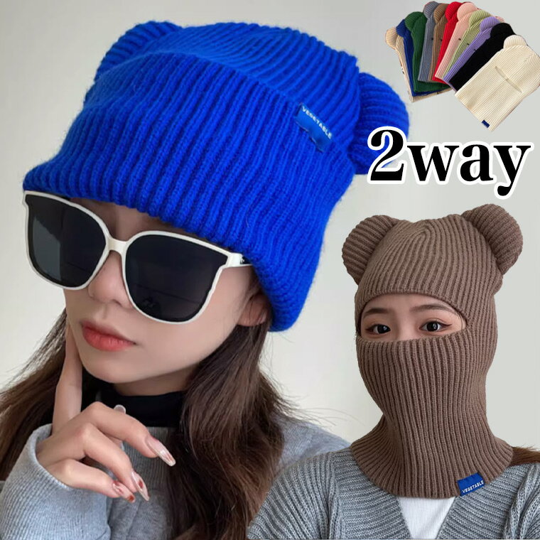 キャンプやスノボに便利な2way目出し帽 バラクラバ 耳つき 目だし帽 冬用 フェイスマスク フェイスカバー 帽子 ニット ニット帽 防寒 帽子 冬 冬用 帽子 目出し帽子 目出し 極寒 レディース 大人 送料無料