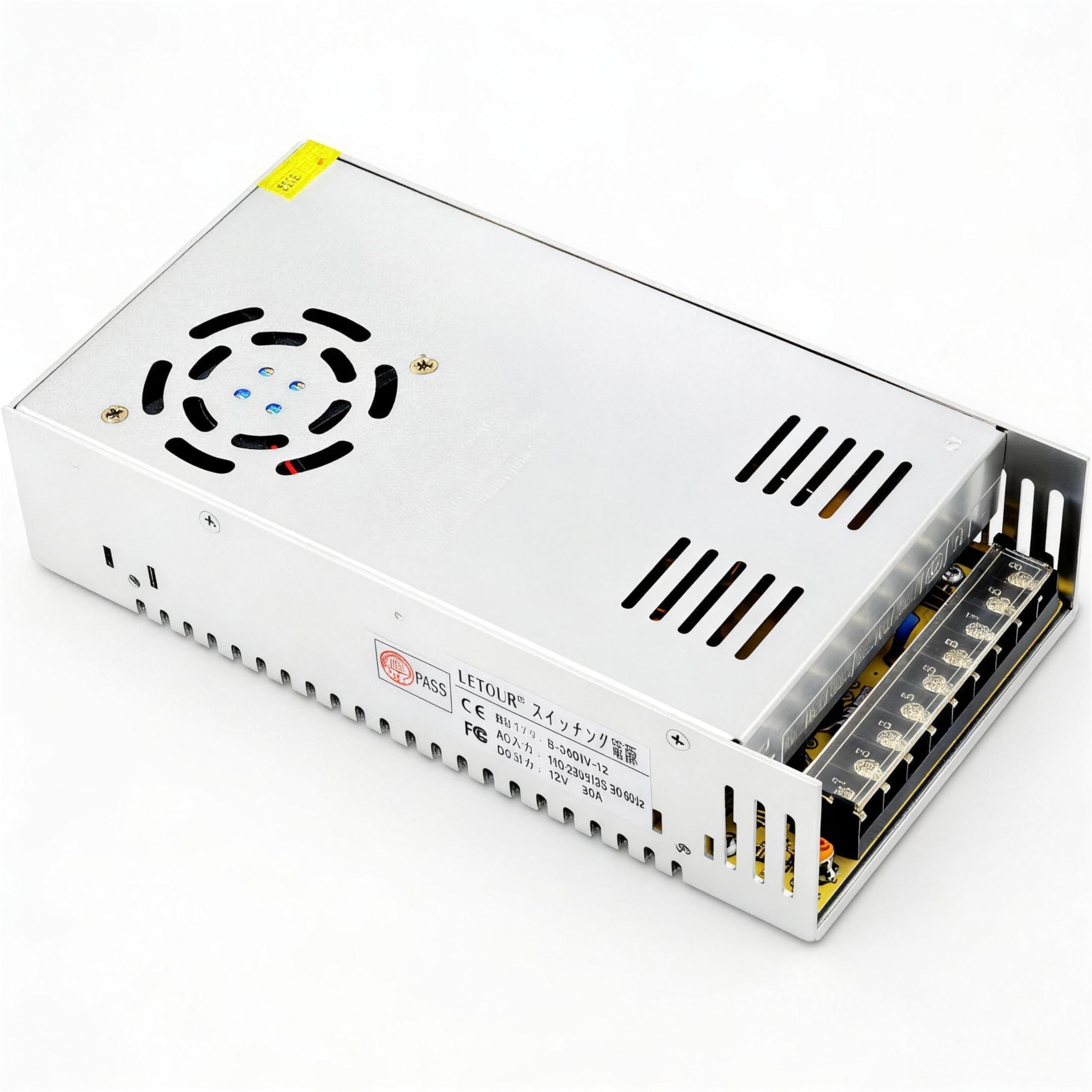 【まとめ買いで最大1000円OFFクーポン!】【送料無料】スイッチング電源 直流安定化電源12V 30A 360W 過負荷電圧遮断 安全保護回路 放熱ファン付き AC DCコンバーター 電源装置LEDライト/発光ログ/通信装置/家電製品など用 自動リセット可能(0.7kg)