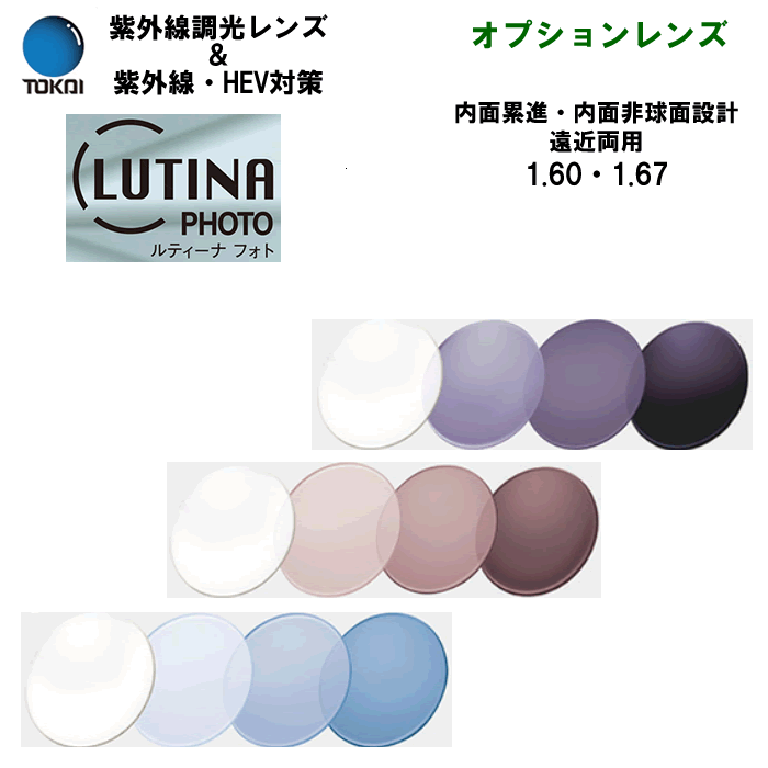 【オプションレンズ2枚1組】ルティーナフォト:遠近両用:HX1.60/UX1.67/調光レンズ/紫外線調光レンズ/遠近両用/内面累進/内面非球面/強力UVカット/HEV対策[送料無料]