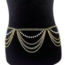 ボディチェーン 欧米スタイル フェイクパール ウェーブデザイン ラインストーン ゴールドカラー ビーチ 水着 リゾート 大人 セクシー 変色しにくい ウエストアクセサリー