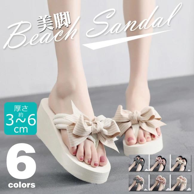 WILLS ビーチサンダル トングサンダル ローヒール ハイヒール 厚底 美脚 滑り止め ウェッジソール リゾート ハンドメイド 痛くない 歩きやすい 疲れない リボン 蝶結び ボーダー 横縞 サンダル ビーサン レディース ボヘミアン 可愛い 浴衣 旅行