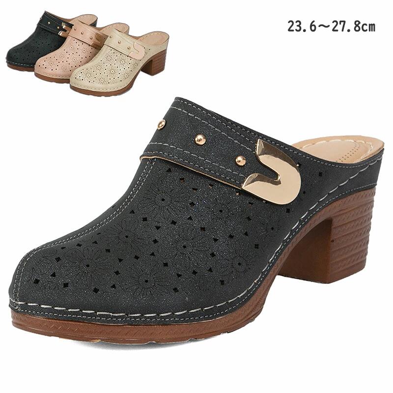 サボ サンダル レディース 厚底 ストラップ ウェッジソール ミュール レディース 脚長 太ヒール おしゃれ サンダル 春 夏 きれいめ 美脚サンダル 秋 ハイヒール 夏サンダル ブラック 靴 楽 カジュアル 7cm 大きいサイズ