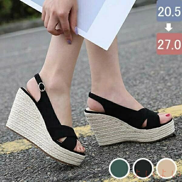 【送料無料】サンダル レディース 厚底 ウェッジソール ヒール10cm ストラップ エスパドリーユ クロスデザイン 美脚効果 夏 靴 ぺたんこ風 軽量 歩きやすい 大きいサイズ 小