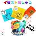 3枚組今治タオル オーガニック タオル プレゼント 子供の絵 子どもの絵 刺繍 ハンカチ 子供の絵 刺繍 子供の絵 イラスト プレゼント 喜寿 古希 今治タオル ギフト 名入れ 誕生日 タオル マフラータオル