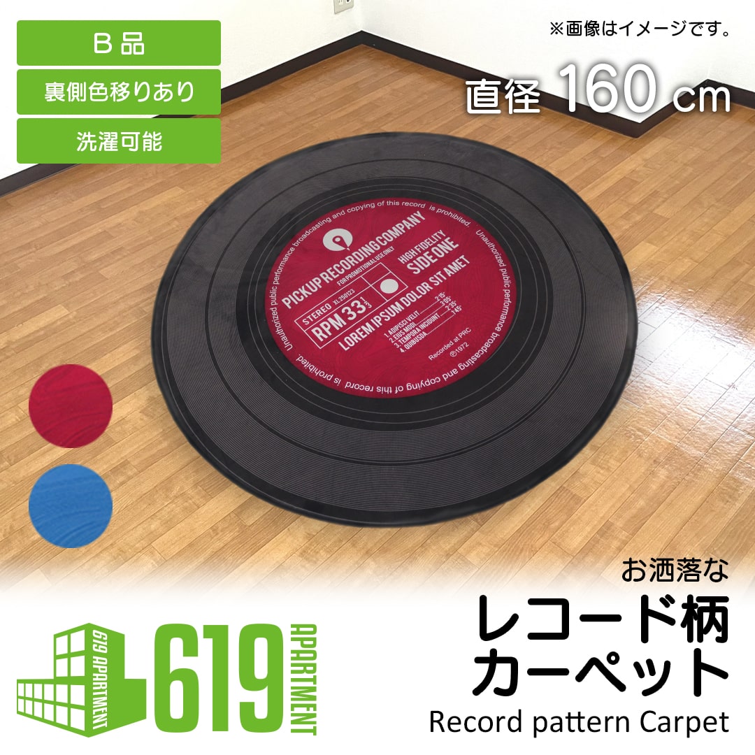 【B品・直径160cm】 カーペット ラグ レコード レトロ かっこいい おしゃれ 円形ラグ マイクロファイバー レコード柄カーペット 洗える 清潔