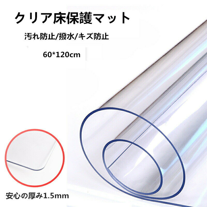 【店長おすすめ】床保護シート クリアチェアマット 凹み防止 おしゃれ 撥水 汚れ防止 キズ防止 保護 カーペット 透明テーブルクロス テーブルマット デスクマット テーブルクロス キッチン用品 60*120cm PVC 冷蔵庫マット チェアマット 透明 厚み1.5mm