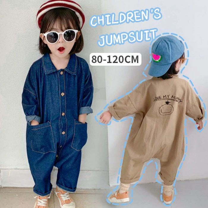 オールインワン デニム 90cm パンツ 140cm 無地 ベビー カジュアル サロペット ジーンズ 女の子男の子 オーバーオール ロングパンツ 子供服 デニム パンツ 130cm KIDS 100cm ジュニア カジュアル 110cm 120cm