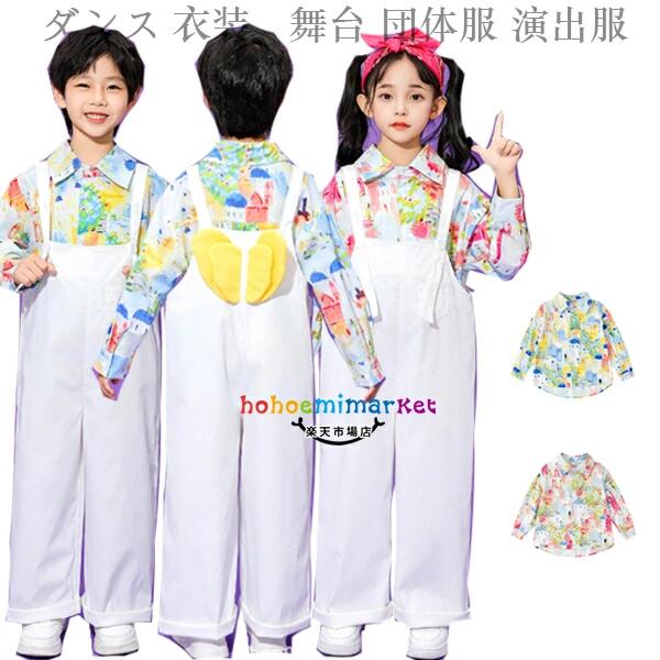 キッズダンス衣装 長袖シャツ 男女兼用 運動会 子供服 サロペット 女の子 男の子 緑シャツ 赤シャツ オーバーオール 舞台 団体服 演出服 かわいい シャツ サロペット パンツ 長ズボン 文化祭 写真撮影 発表会 イベント モデル服 練習着 100-180 小学校、幼稚園、クラス活動