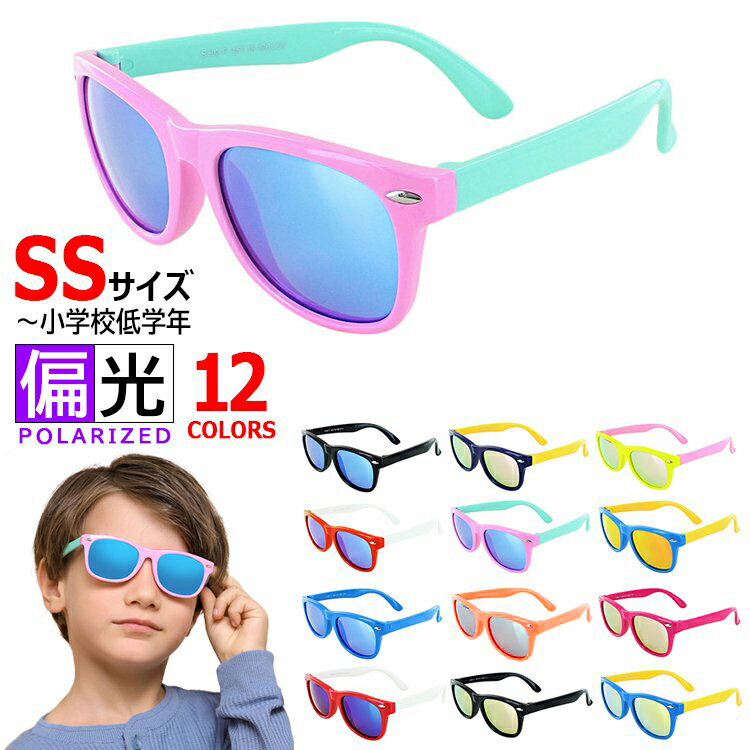 偏光サングラス 子供用 キッズ サングラス 偏光機能 SSサイズ 小学生低学年 d802k 軽量 ミラーレンズ 偏光レンズ UVカット ウェリントン 男の子 女の子 かわいい おしゃれ 釣り ドライブ アウトドア ブラック/ネイビー/イエロー/ピンク/ レッド/ホワイト/ブルー/オレンジ