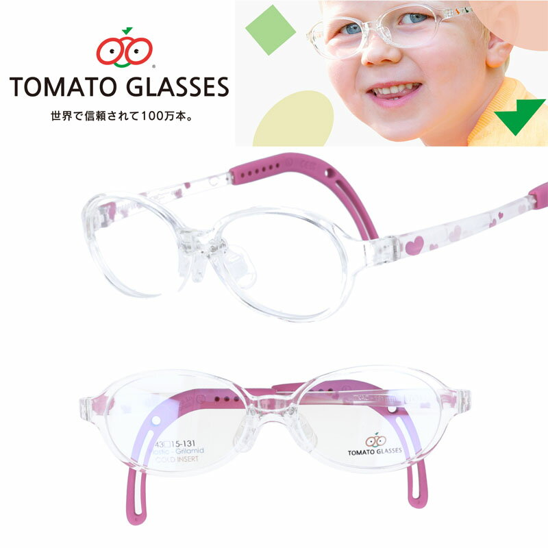 子供用 メガネ tomatoglasses トマトグラッシーズ tkac11 透明 クリア ピンク kids キッズメガネ ジュニアフレーム 幼児 小学生 メガネ 男女兼用 子供 こども カラフル 伸縮 調節 可能 グッドデザイン賞 かわいい かっこいい イラスト ハート