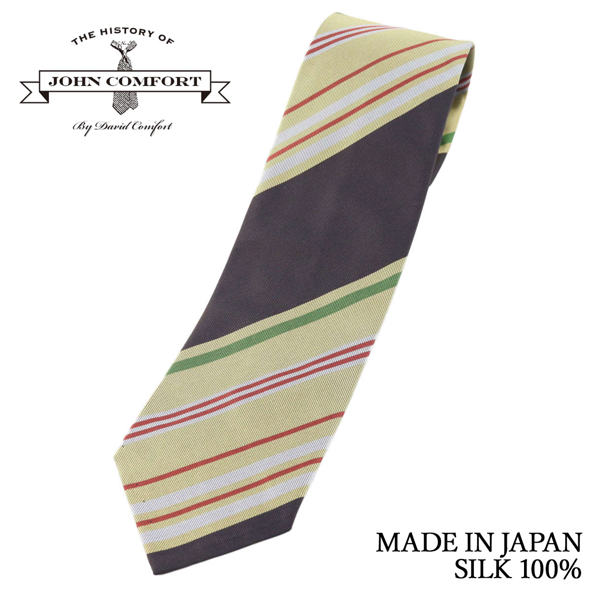 ■TRAD SALE!JOHN COMFORT / ジョン・コンフォート ストライプタイ / レジメンタルネクタイ ( JCS-128 )●濃紺地にレモンイエローのストライプ柄フレスコ調ネクタイ 【楽ギフ_包装】