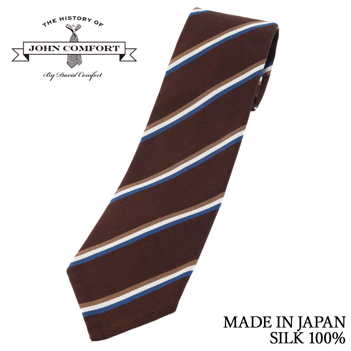 【スーパーSALE対象商品+10%OFFクーポン配布中】ジョンコンフォート ネクタイ シックでモダンなストライプ ブラウン レップ織り シルク100% 英国生地 日本製 ハンドメイド メンズ