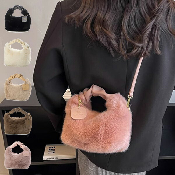 ショルダーバッグ ハンドバッグ 2WAY ファー 小さい 肩掛け 斜めがけ 鞄 レディース ブラック オフホワイト カーキ コーヒー ピンク